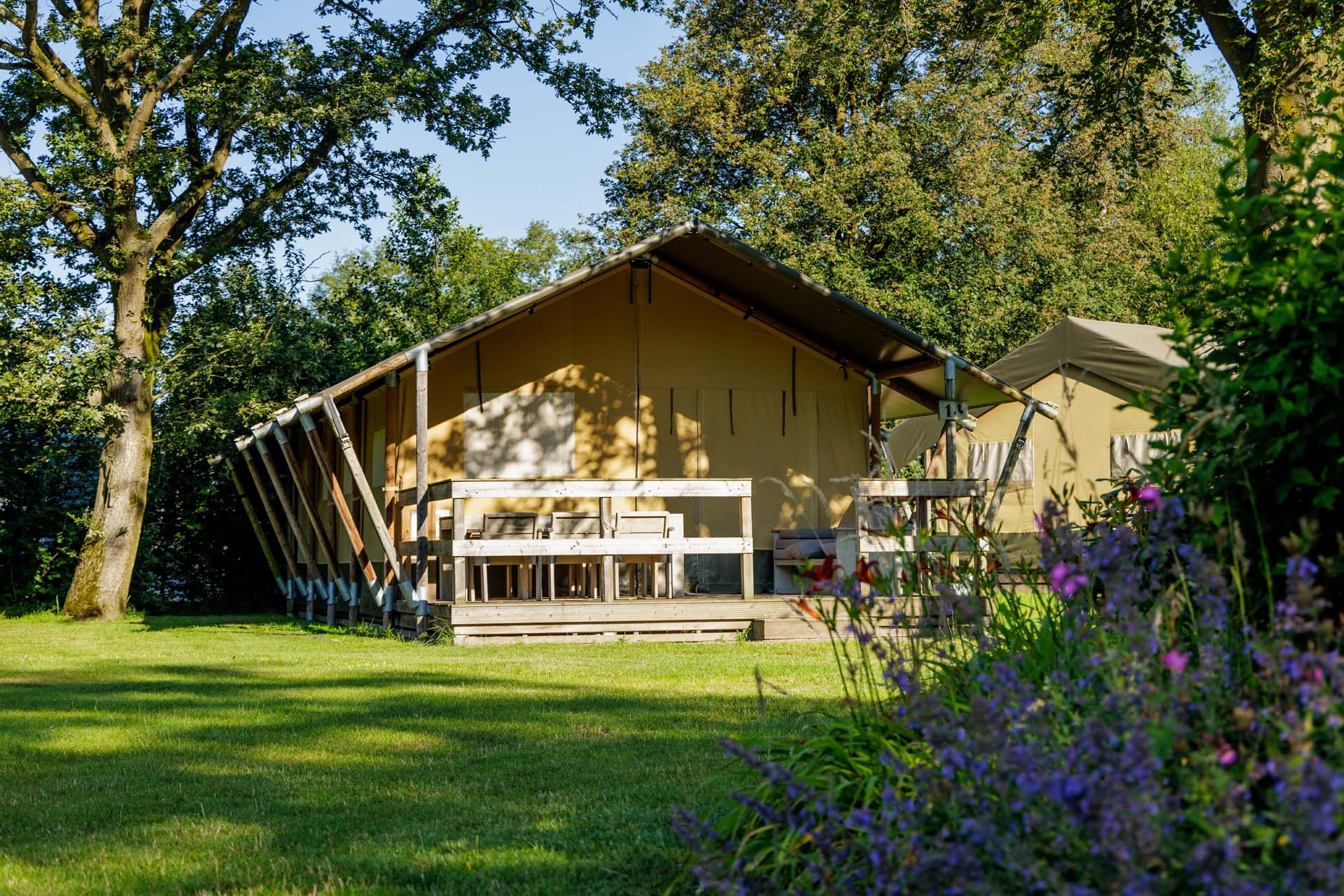 Wenn Sie Glamping in den Niederlanden im grenznahen Winterswijk machen, kommen Sie in den Genuss von Camping mit allem Luxus und Komfort. Im Ferienpark De Twee Bruggen erleben Sie das echte Campinggefühl, ohne Ihr eigenes Zelt oder Ihren eigenen Wohnwagen mitbringen zu müssen. Sie wohnen in einem geräumigen Safarizelt mit eigener Dusche, Toilette und Waschbecken, umgeben von der traumhaften Landschaft der Achterhoek.